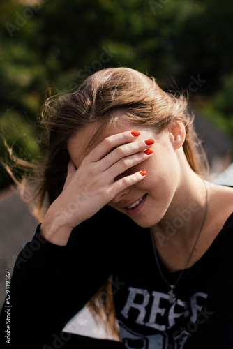 female face palm closeup