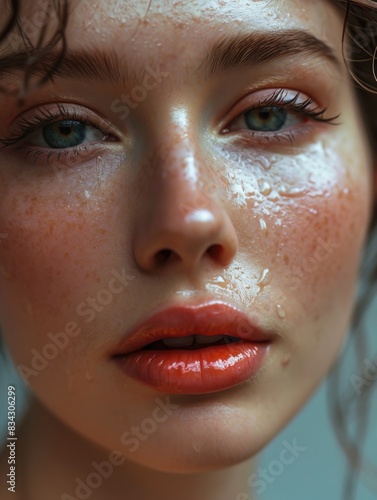 Female face with natural makeup. AI generative.