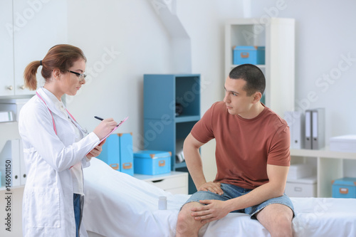 Female orthopedist with patient in her office