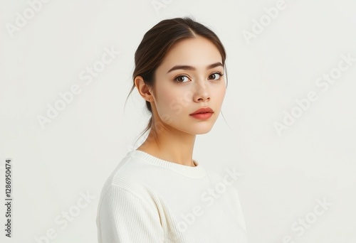 Female portrait with neutral makeup and simple clothing
