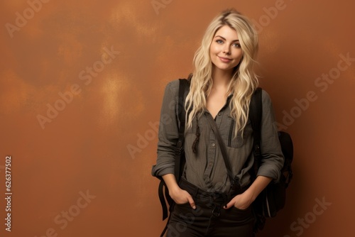 Fictional blond model with long hair. Isolated on a colored background. Generative AI.
