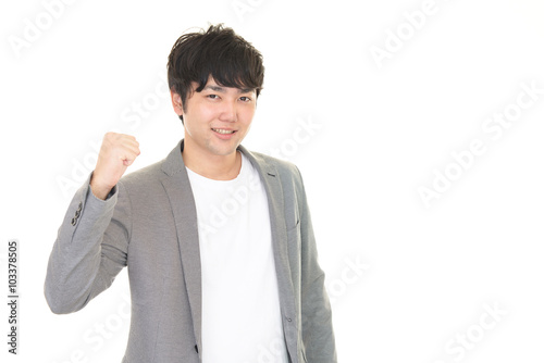 ガッツポーズの青年
