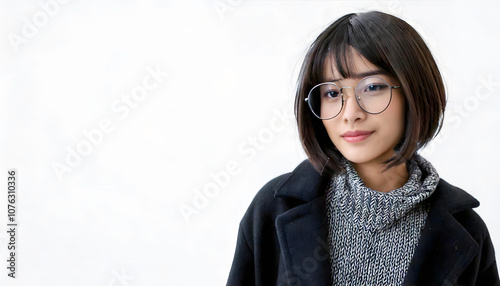 冬服を着た大きい丸い黒縁メガネの日本人の女の子