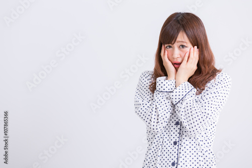 パジャマで恥ずかしがる女性