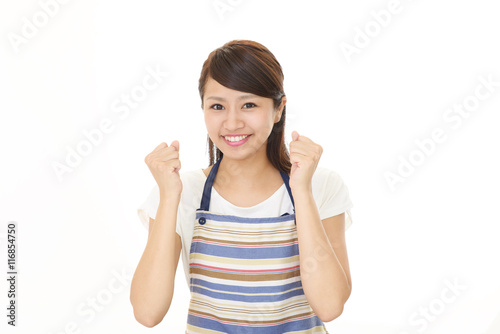 ガッツポーズの主婦