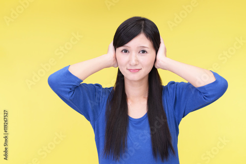 耳を塞ぐ女性