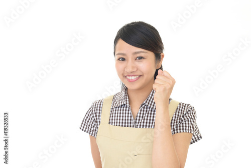 ガッツポーズの主婦