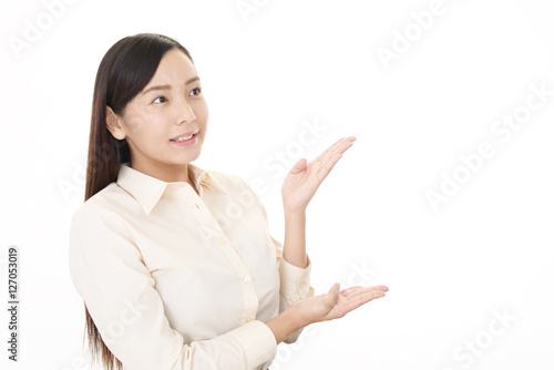 案内する女性