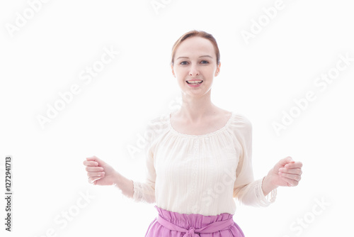 大喜びをする笑顔の若い女性