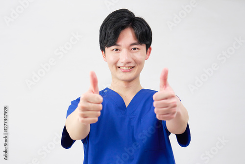 医者・看護師・歯科医師・介護士 男性 グッドサイン 白背景
