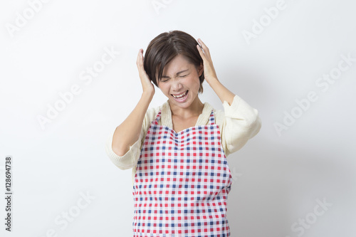 エプロンを付けた女性