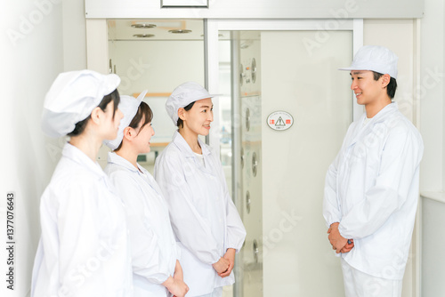 エアーシャワー・クリーンルームのある工場で働く作業員