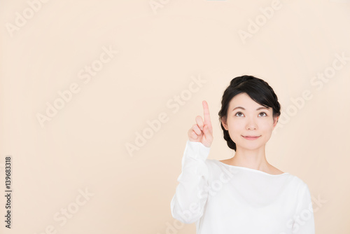 上を指差す女性