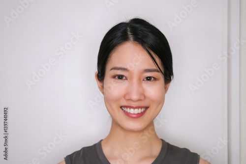 白い歯を見せて笑う女性の顔のクローズアップ