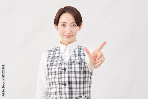 女性 事務員 チェックサイン 白背景