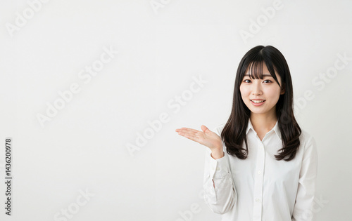 笑顔でジェスチャーを加えながら説明をする日本人の女性