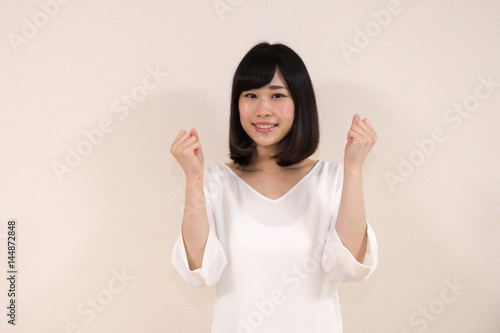 笑顔の女性 ガッツポーズ