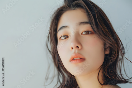 静かに見つめる日本人女性のクローズアップ