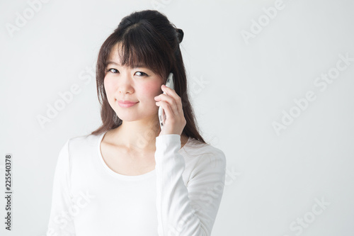 スマホ・女性・白バック