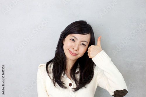 親指を立ててサインを出す女の子