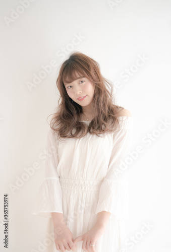 春 夏 ロングヘア ウェーブヘア 女性 笑顔