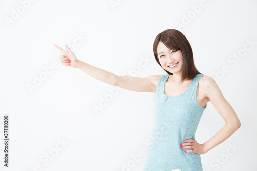 指差しをする女性