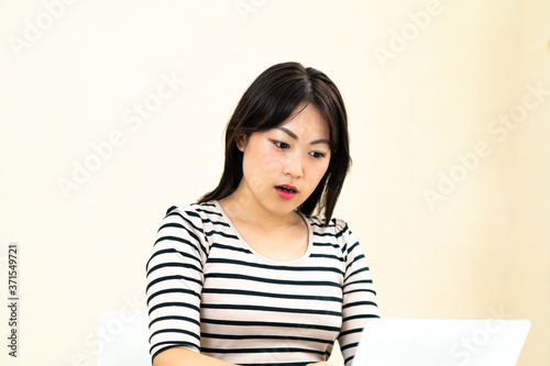 デスクワーク中に驚く女性社員