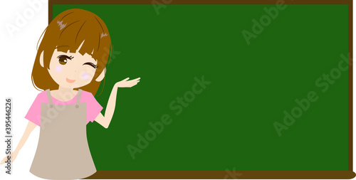 黒板と可愛い主婦のイラスト