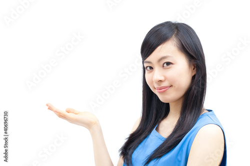 案内する女性