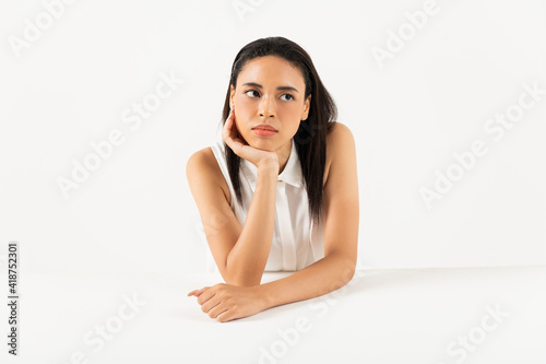 頬杖をつくハーフ女性のポートレート
