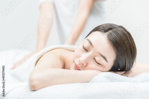 エステサロンでマッサージを受ける若い女性
