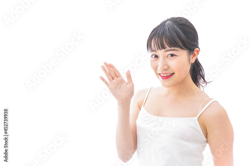 スキンケア・メイクをする若い女性