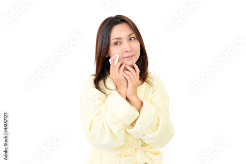 スキンケアをしている美しい女性