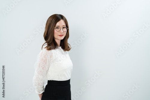 眼鏡をかけた爽やかな女性