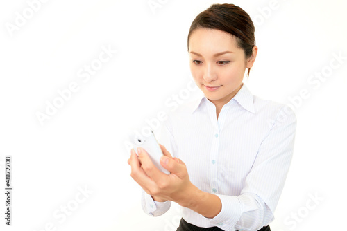 スマートフォンを持つオフィスレディー