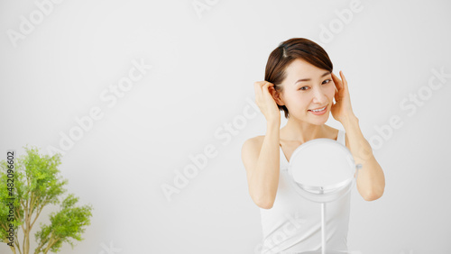 ヘアケアをする若い女性