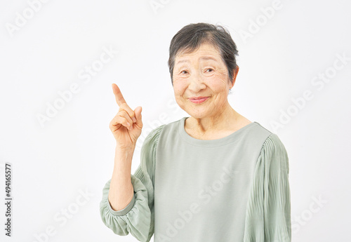 高齢者 指差し 白背景