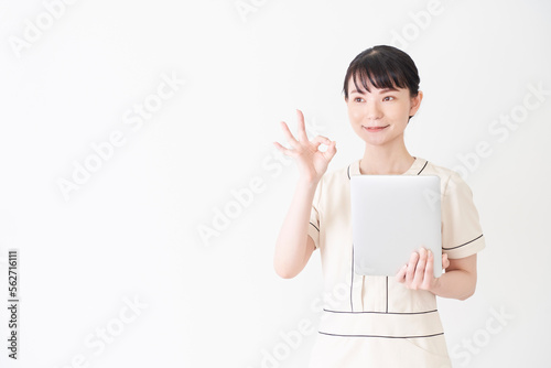 タブレットを操作するエステ・美容クリニックの女性