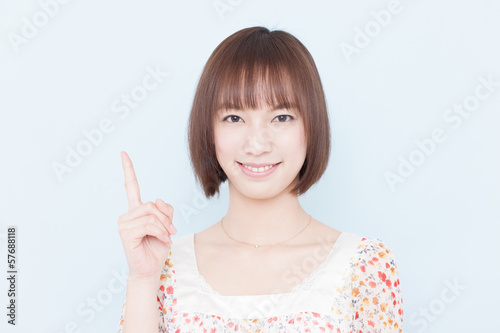 指差す女性