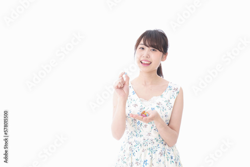 お菓子を食べる若い女性