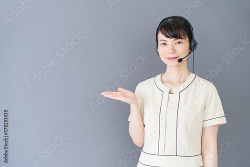 ヘッドセットをするエステ・美容クリニックの女性