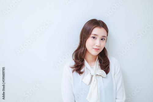 白いブラウス姿の若い女性|左スペース