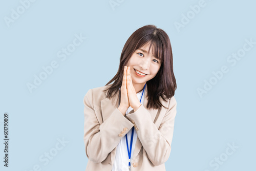お願い・謝るポーズの日本人ビジネスウーマン
