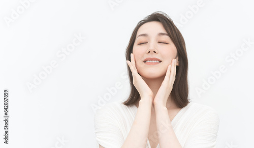 美しいミドル女性のビューティーポートレート/白背景スタジオ撮影バストアップ