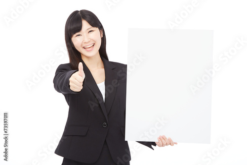 メッセージボードを持ってグッドサインするビジネスウーマン
