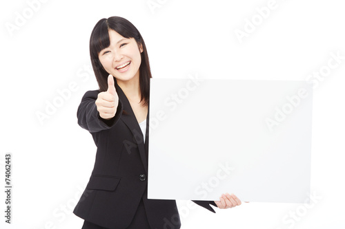 メッセージボードを持ってグッドサインするビジネスウーマン