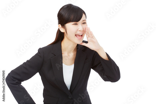 呼びかけるビジネスウーマン