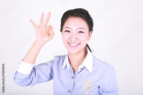 서서 제스처를 취하는 두 명의 아시안 비즈니스 여성