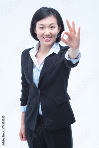 서서 제스처를 취하는 아시안 비즈니스 우먼