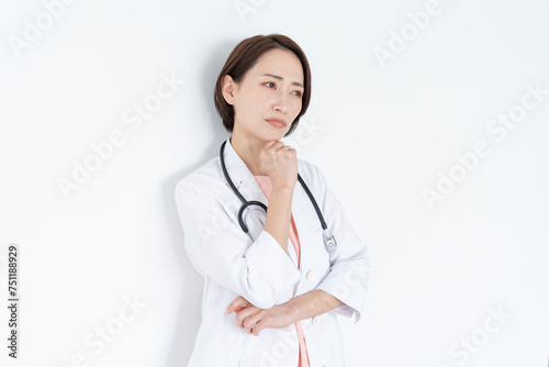考える聴診器をつけた女性医師のポートレート